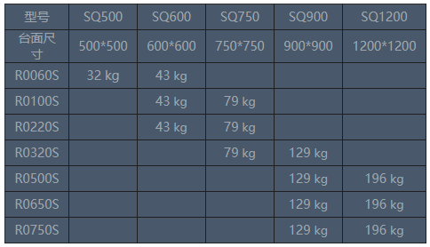 標(biāo)準(zhǔn)方形擴(kuò)展臺(tái)的質(zhì)量表