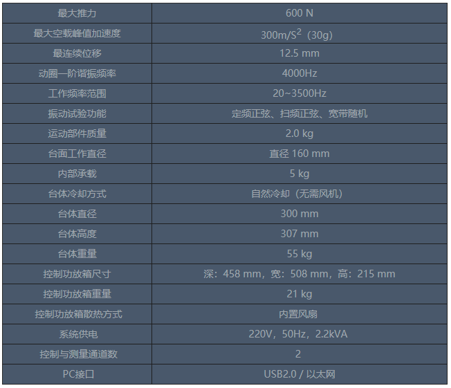 符合JJG298《中頻標(biāo)準(zhǔn)振動臺(比較法)計量檢定規(guī)程》和JJG948《電動振動試驗系統(tǒng)計量檢定規(guī)程》計量指標(biāo)合格要求;